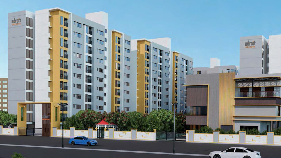 Check out this residential project for sale by Adroit Urban Developers Pvt Ltd in Thalambur, Chennai. Adroit Prosper offers Apartment as property type. The project has been developed in an area of 4.62 Acres . It is currently Under Construction. Available configurations include 2 BHK. As per the area plan, units are in the size range of 1011.0 - 1073.0 sq.ft.. Adroit Prosper was launched in February 2021. Adroit Prosper possession is June, 2024. Altogether, there are 573 units available. The address of Adroit Prosper is Thalambur, Navalur, off OMR.