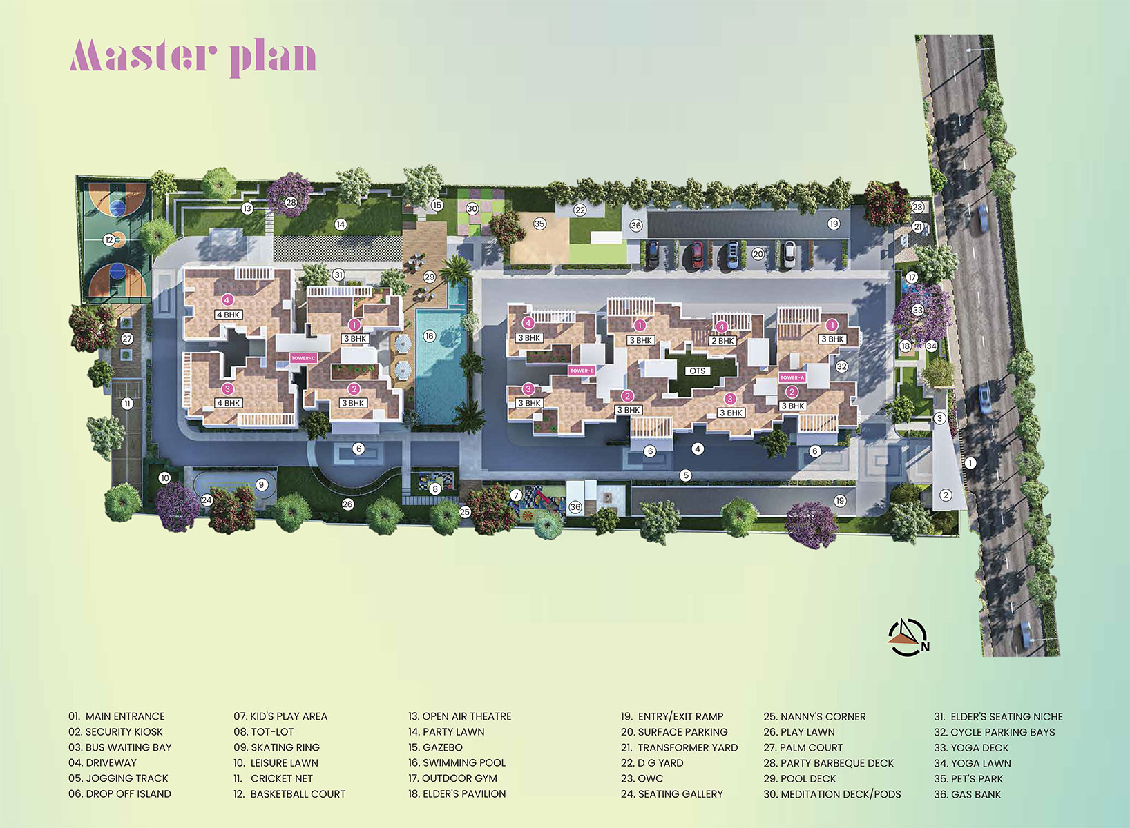 Some of the 30+ Amenities at Pride KR Puram include an amphitheater, a fully equipped clubhouse, landscaped gardens, a gymnasium, a swimming pool, a recreation area, multi-sports courts, a children’s play area, a party hall, and meticulously planned with utmost importance to state-of-the-art 24/7 securities.
