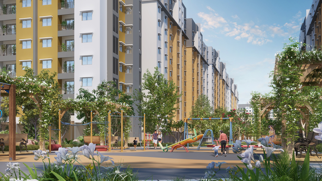 The project comprises of 21 Towers(Stilt+11 Floors) spreading across 55 Acres with 40+ world class amenities & 76% lush green open spaces. It is located in the heart of Chennai at Pallikaranai just 15 Mins from the International Airport.