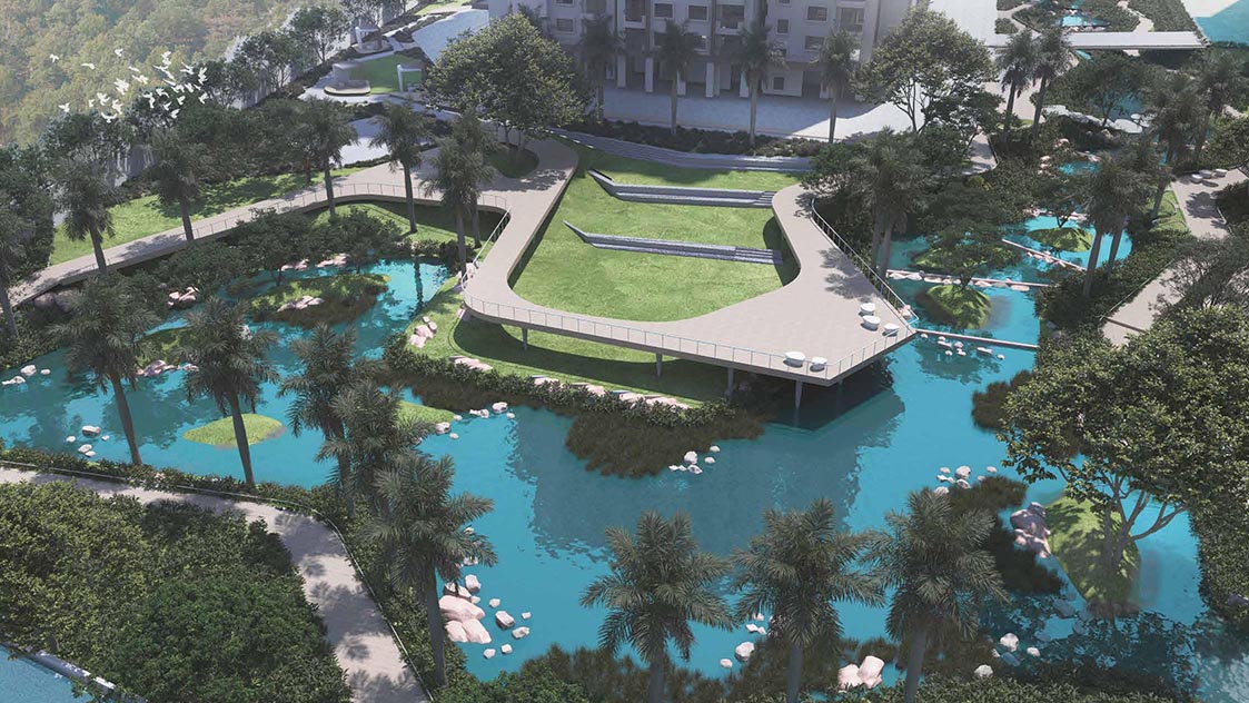 A city, yes, but unlike any you’ve known. Your home is part of a community nestled within nearly 50 acres of lush green space. Trees sway with stories, birdsong rises louder than traffic, trails become paths where you walk, and sometimes stop, without even knowing why.