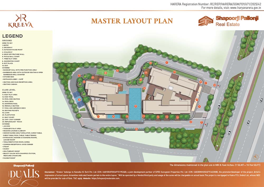 Some of the Amenities at Shapoorji Pallonji Dualis include a fully equipped clubhouse, landscaped gardens, a gymnasium, a swimming pool, recreation rooms, an outdoor sports court, a children’s play area, a party hall, and a meticulously planned utmost importance state-of-the-art 24/7 securities.