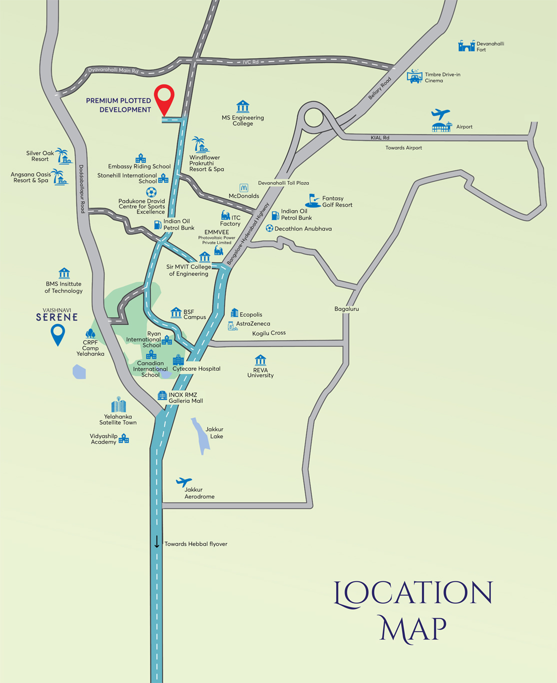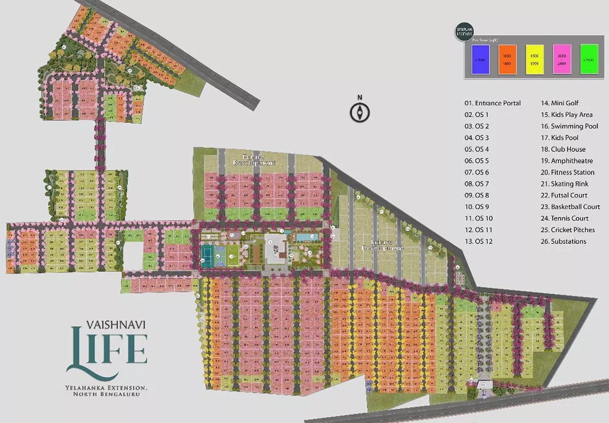 The community is carefully crafted to provide a modern and comfortable living experience with world-class amenities and premium infrastructure. Residents can enjoy a fully equipped 32,750 sq. ft. clubhouse, landscaped gardens, a 2-acre central activity zone, children’s play areas, and dedicated party spaces, all designed to enhance community living. Strategically located near Yelahanka, Jakkur, Doddaballapura Road, and the Bangalore International Airport Road, Vaishnavi Life Plots offers excellent connectivity to key parts of Bangalore while being close to established and upcoming social infrastructure, making it an ideal destination for both living and long-term investment.